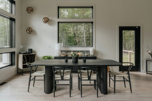 Konstruktionen er udført i zinkbelagt lakeret stål med en bordplade i rustfri stål (SS430). Overfladen er sort pulverlakeret, hvilket giver et moderne udtryk og ekstra beskyttelse mod vejrpåvirkninger.