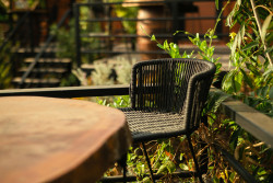 Cozze udebordet er designet som en robust og praktisk arbejdsstation til udekøkkenet. Bordet har tre låger, der giver adgang til rummelig opbevaring, og en indbygget affaldsbeholder, som gør det nemt at holde arbejdsområdet rent.